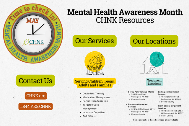 Press ReleaseSeptember 5, 2023CHNK Behavioral Health Receives Grant from The Honorable Order of Kentucky Colonels, Enhancing Youth Mental Health Services in Northern KentuckyRead full article